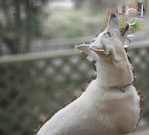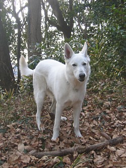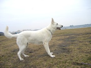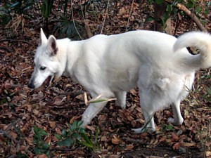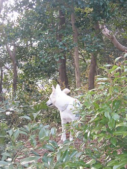 | 山道で 後ろから走って来た人が 私たちの間に入ってしまって 吹雪吠える暇もなく その人に追い立てられるように ずんずん逃げて行く どこまで行ったのか しばらくして帰ってきたけど 案外弱虫ふぶ |