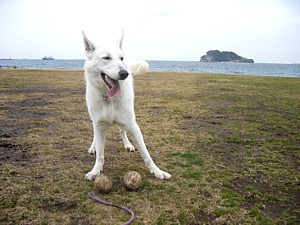 | 枝で投げての取ってこい遊び 夢中で探す | |