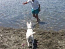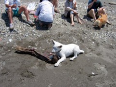| Y父さんはいつも海へ行ってるけど みんなは 子供達が小さいときは毎週行ってたのに 大人だけになったら 何年も行ってない 久しぶりに行きましたよ 気持ちいいのなんのって 近くに海があるのって 幸せな事よね これも吹雪のおかげだね どこでも吹雪が歩いていると 何の犬?と聞かれる 今日も若い男の人に聞かれた それと 若いお母さん追いかけてきて {ホワイトシェパードですよね?」 「ネットで見たけど本物初めて!」 ハイハイ うんと見ちゃって下さいよ なんせ 動く広告塔ですからね |