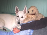 左のシェパードは 1895年生まれでHorand von Grafrath 初めてドイツで「ジャーマンシェパード」として登録された犬だとか このHorand von Grafrathの祖父が なんと色の白いシェパードだった 白いシェパードは ジャーマンシェパードの歴史の中では 最初から存在していた 以上 シェパ立ち出来ない吹雪の事で JORJさんから教えていただきました なるほど 腰の位置が高いですね 比べてみると 良く似てます 新種だと思っていましたので こんな古くからいたとは驚きです これからどこへでも 吹雪を連れて行って ホワイト・シェパードが こんなにすてきなワンコだって宣伝しましょう |