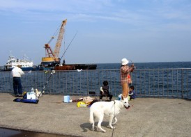 | センターの近くに海の公園があります | 釣り客がたくさん |