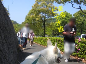 | 五月の連休 恒例の湘南国際村へのハイキング 今回の犬軍団は吹雪・ビノ・ハーシーです 雲一つ無いお天気 歩くには暑くて 犬軍団着くまでに舌がビローンとなりました |